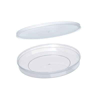 Пластиковая банка 180 мл — прозрачная порционная тара из сертифицированного пищевого пластика для производителей рыбных пресервов, икры, мёда, готовых салатов, джема, солений, творога, соусов и приправ.